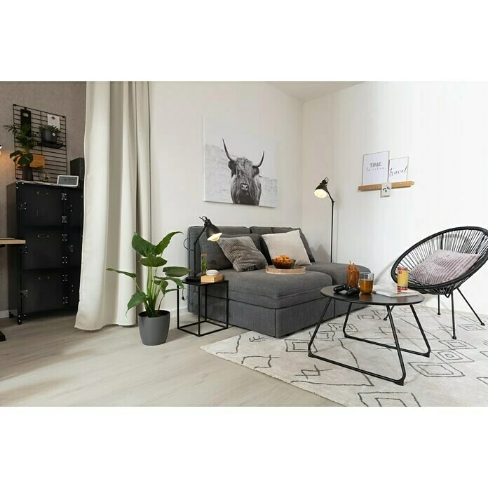 Der Cube Beistelltisch aus schwarzem Metall verleiht dem Raum einen industriellen Look. Als Dekoobjekt für die Präsentation von Vasen, Blumen und Kunstelementen eignet er sich ideal. Auch neben dem Sofa oder im Eingangsbereich ist der Beistelltisch ein nützliches und dekoratives Wohnaccessoire, das für Gemütlichkeit sorgt.