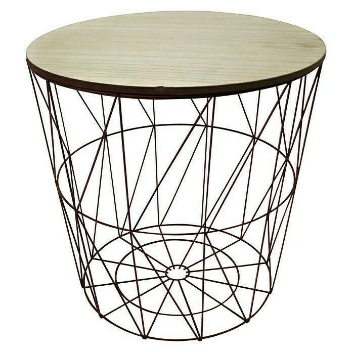 Der Beistelltisch besticht durch Funktionalität und modernem Design und lässt sich in viele verschiedene Einrichtungsstiele integrieren. Der Drahtkorb mit abnehmbarer, runder Tischplatte dient als Aufbewahrungsbox, Couchtisch oder Beistelltisch im Innenbereich und ist somit ein Multitalent. Die furnierte MDF Tischplatte setzt einen interessanten Kontrast zu dem aus Metall gearbeiteten Gestell – in Kombination lockert der Tisch den Raum auf und wird zu einem absoluten Eyecatcher.