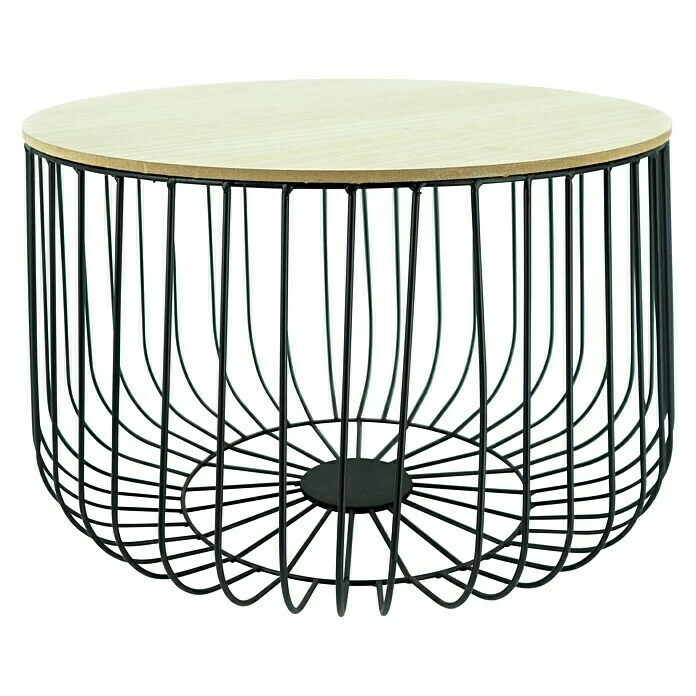 Der Beistelltisch ist in modernem schwarz und einer naturfarbenen Holzplatte ein echter Hingucker in jedem Wohnraum und bietet vielerlei Dekorationsmöglichkeiten. Der Metallkorb-Tisch fügt sich durch sein skandinavisch minimalistisches Design in nahezu jeden Einrichtungsstil hervorragend ein und sorgt für ein gemütliches Wohnambiente. Die Tischplatte setzt einen interessanten Kontrast zu dem aus Metall gearbeiteten Gestell – in Kombination lockert der Tisch den Raum auf und wird zu einem absoluten Eyecatcher.