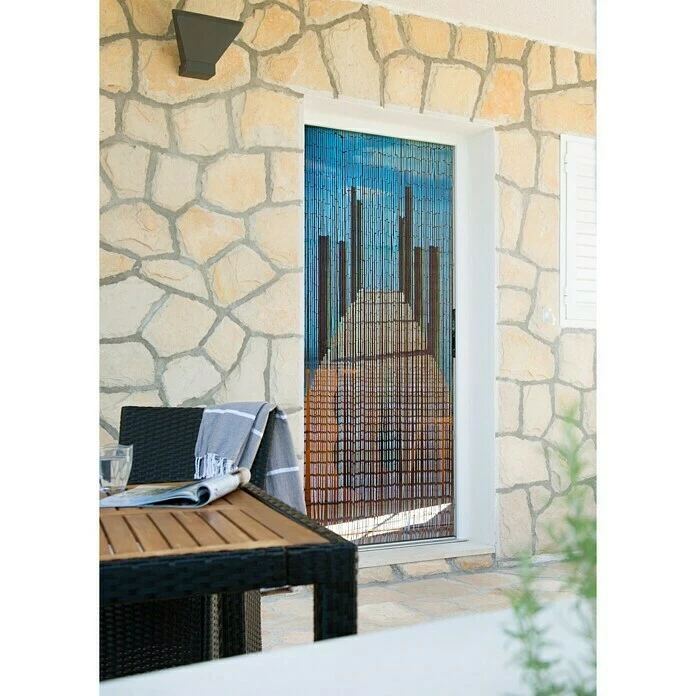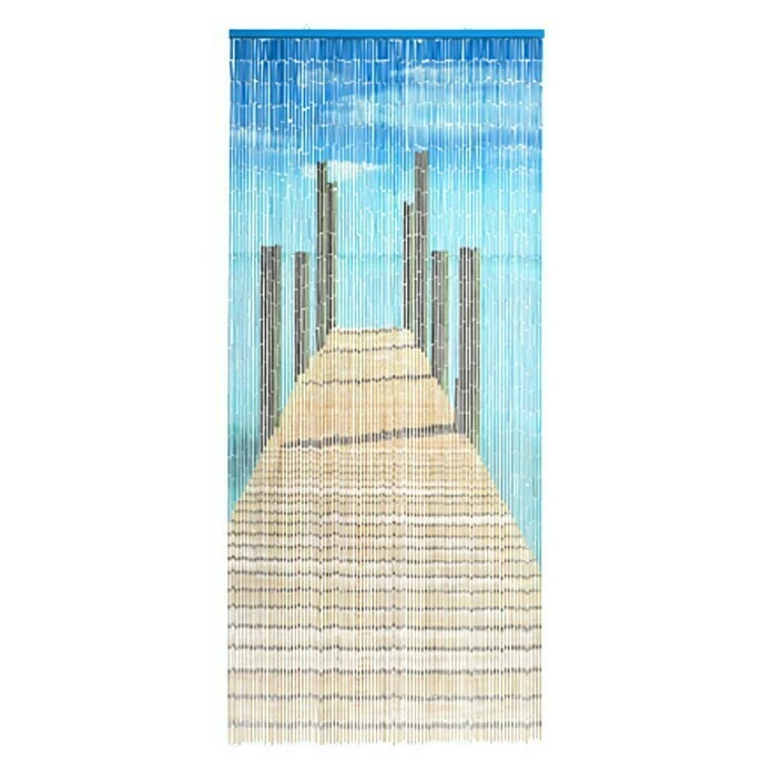 Der Conacord Perlenvorhang Bridge verleiht den eigenen vier Wänden ein tolles Urlaubsfeeling. Die eingesetzten Perlen sind farblich so handbemalt, dass ein Bild von einem ins Wasser ragenden Steg entsteht. Gleichzeitig bietet der Vorhang einen Blickschutz sowie einen Insekten- und Fliegenschutz und die einzelnen Stränge finden nach Betreten des Raums wieder elegant schwingend zueinander. Dieser Dekovorhang ist an einer Holzleiste befestigt, die sich mit zwei Ösen an der Wand oder dem (Tür-)Rahmen befestigen lässt.