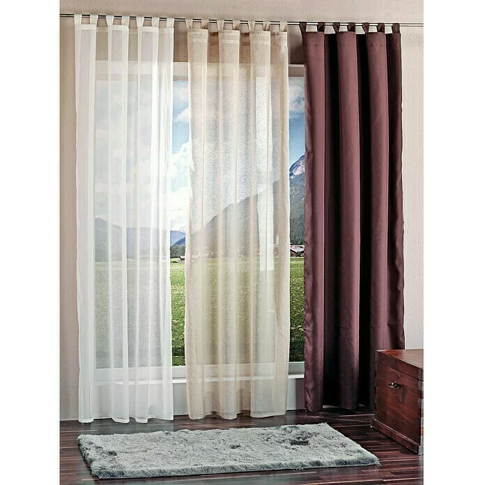 Der Schlaufenschal Effecto mit dezenten Garneffekten in modischen Uni-Farbstellungen, verleiht jedem Wohnraum eine besondere Atmosphäre. Der Stoff besteht aus 100 % Polyester und hat einen schönen Fall durch die halbtransparente, weiche und leicht glänzende Qualität. Dieser Fertigvorhang bietet tolle Dekorationsvielfalt. Das Gewebe ist ein Uni-Effektyoile, der tolle Akzente setzt und wohnliche Stimmung verbreitet. Fix und fertig zum Aufhängen: Vorhang mit Schlaufen und Bleistiftfaltenband. Mittels Bleistiftfaltenband lässt sich die Gardine gleichmäßig auf die gewünschte Breite zusammenraffen. Die Schlaufen dienen der Aufhängung an der Gardinenstange, Bleistiftfaltenband für die Montage auf einer Gardinenschiene. Je nach Bedarf können die Schlaufen abgeschnitten werden und so das Bleistiftfaltenband zur Aufhängung genutzt werden. Die Höhe des Vorhangs verringert sich dabei um ca. 7 cm.