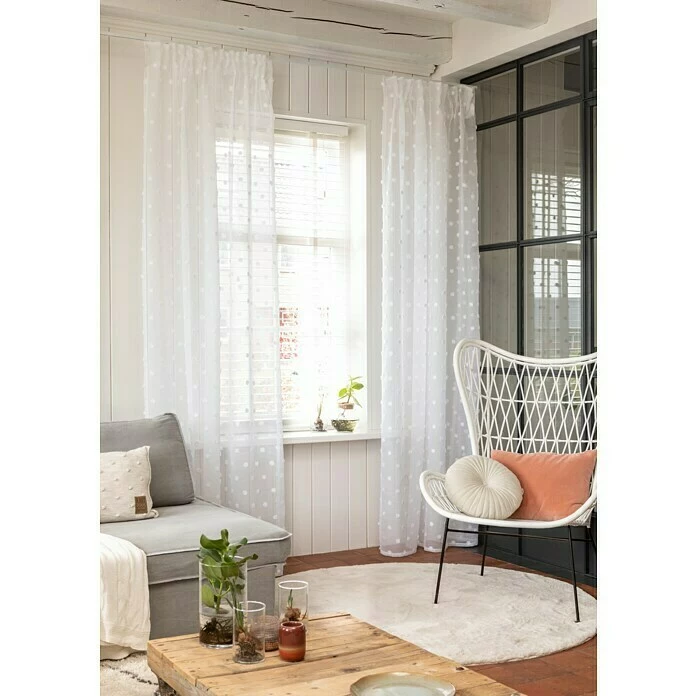 Der Elbersdrucke Schlaufschal Fluffy Dots vermittelt eine gemütliche Atmosphäre für jeden Raum. Die Fertigdekoration mit verdeckten Schlaufen und Bleistiftfaltenband lässt sich leicht und ohne zusätzliches Zubehör installieren. Der halbtransparente Polyesterstoff wird durch ein Design mit flauschigen Punkten zum dezenten Blickfang mit dem gewissen Etwas. In den Maßen 140 x 255 cm ist dieser Schlaufschal ideal für hohe Fenster oder Türen geeignet und setzt so einen stilvollen Akzent.