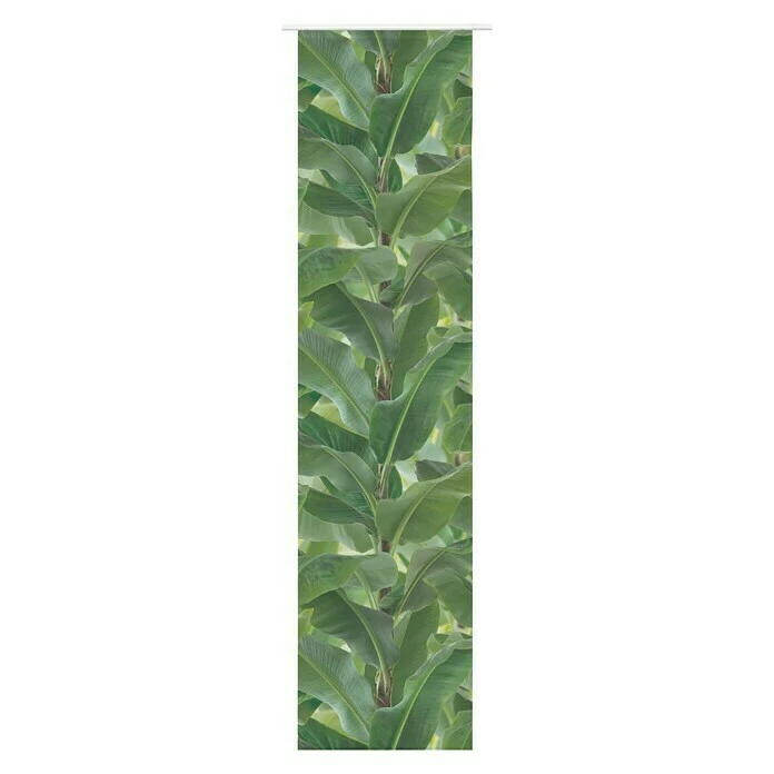 Mit dem Flächenvorhang LEAF von Expo Ambiente lässt sich jedem Wohnraum ein Hauch von Frische und Originalität verleihen. Somit kann für ein angenehmes und einzigartiges Ambiente gesorgt werden. Der aus hochwertigem, feinem Voile ausgeführte, transparente und leicht glänzende Vorhang überzeugt durch seine weiche, leichte Qualität, schönen Fall und attraktives, naturnahes Aussehen. Das trendige, im Digitaldruckverfahren ausgeführte fotorealistische Bananenbaum-Design dieses Vorhangs wertet den Raum optisch auf und lässt sich dabei hervorragend mit Uni-Schiebevorhängen kombinieren. Das Aufhängen des Vorhangs erfolgt schnell und einfach mithilfe des Klettbands. Dank des 4 cm Tunnels am Bodensaum kann der Vorhang mit einem Beschwerungsstab versehen werden (nicht im Lieferumfang enthalten).
