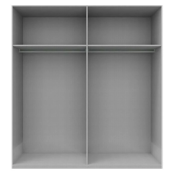 Der Kleiderschrank Swift von Express Möbel ist ein moderner Drehtürschrank mit einem frei zu nutzendem Innenraum. In den oberen Ablagefächern können Decken, Hüte oder Ähnliches sicher verstaut werden. Die Kleiderstangen eignen sich zur knitterfreien Aufbewahrung der Kleidungsstücke. Der aufgeteilte Innenbereich wird von den Türen verdeckt. Die Drehtüren mit alufarbenen Griffen und Dekorbeschichtung sind mit einer Soft-Close-Funktion ausgestattet, die für geräuscharmes und sanftes Schließen sorgt. Der Swift ist aus Holzwerkstoff gefertigt und verfügt über hochwertige Metallbeschläge. Er ist wiederaufbaubar und somit umzugstauglich.