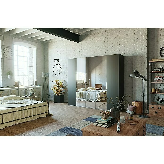 BAUHAUS Express Möbel Drehtürschrank Swift B X T X H: 250 X 58 X 216 Cm, Mit Spiegel, Ohne Zubehör, Farbe Front: Basalt, Farbe Korpus: Eiche Jackson