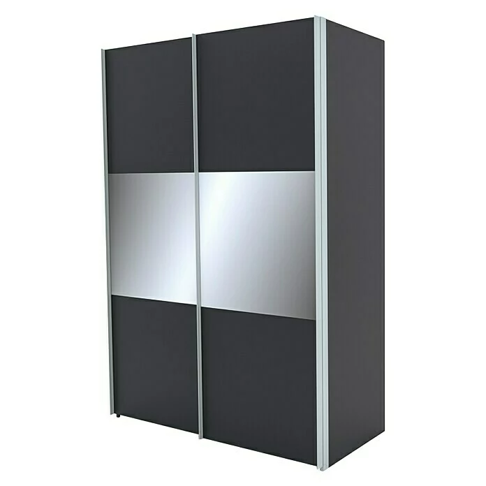 BAUHAUS Express Möbel Schwebetürenschrank Stars B X T X H: 150 X 68 X 216 Cm, Farbe Griff: Alufarben, Farbe Front: Graphit/Grauspiegel Mittig, Farbe Korpus: Graphit