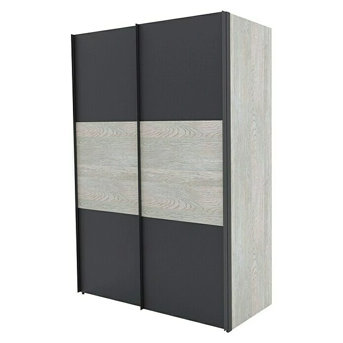 BAUHAUS Express Möbel Schwebetürenschrank Stars B X T X H: 150 X 68 X 216 Cm, Farbe Griff: Graphitfarben, Farbe Front: Graphit/Platin Eiche, Farbe Korpus: Platin Eiche