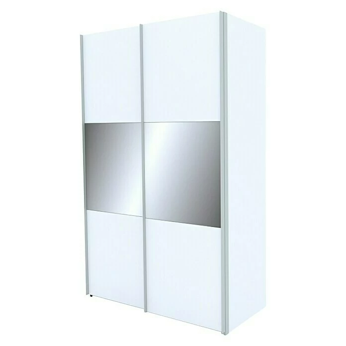 BAUHAUS Express Möbel Schwebetürenschrank Stars B X T X H: 150 X 68 X 236 Cm, Farbe Griff: Aluminiumfarben, Farbe Front: Weiß/Grauspiegel, Farbe Korpus: Weiß