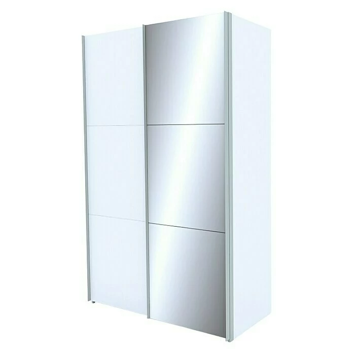 BAUHAUS Express Möbel Schwebetürenschrank Stars B X T X H: 150 X 68 X 236 Cm, Farbe Griff: Aluminiumfarben, Farbe Front: Weiß/Spiegel, Farbe Korpus: Weiß