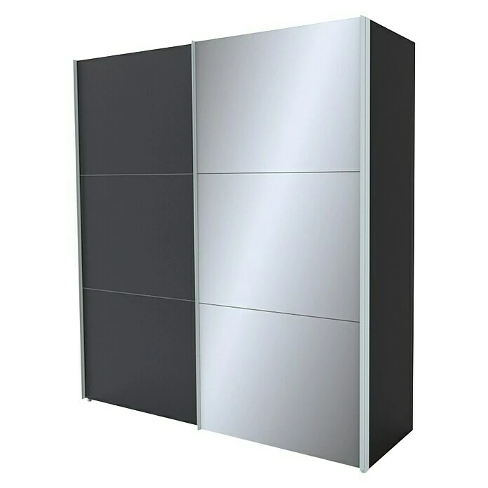 BAUHAUS Express Möbel Schwebetürenschrank Stars B X T X H: 200 X 68 X 236 Cm, Farbe Griff: Alufarben, Farbe Front: Graphit/Grauspiegel Senkrecht, Farbe Korpus: Graphit