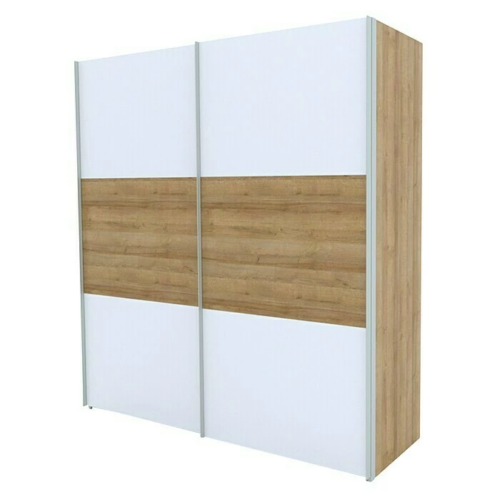 BAUHAUS Express Möbel Schwebetürenschrank Stars B X T X H: 200 X 68 X 236 Cm, Farbe Griff: Aluminiumfarben, Farbe Front: Weiß/Eiche Riviera, Farbe Korpus: Eiche Riviera