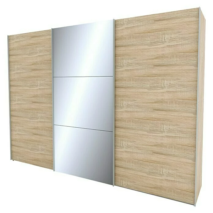 BAUHAUS Express Möbel Schwebetürenschrank Stars B X T X H: 300 X 68 X 216 Cm, Farbe Griff: Aluminiumfarben, Farbe Front: Eiche Sonoma/Spiegel, Farbe Korpus: Eiche Sonoma