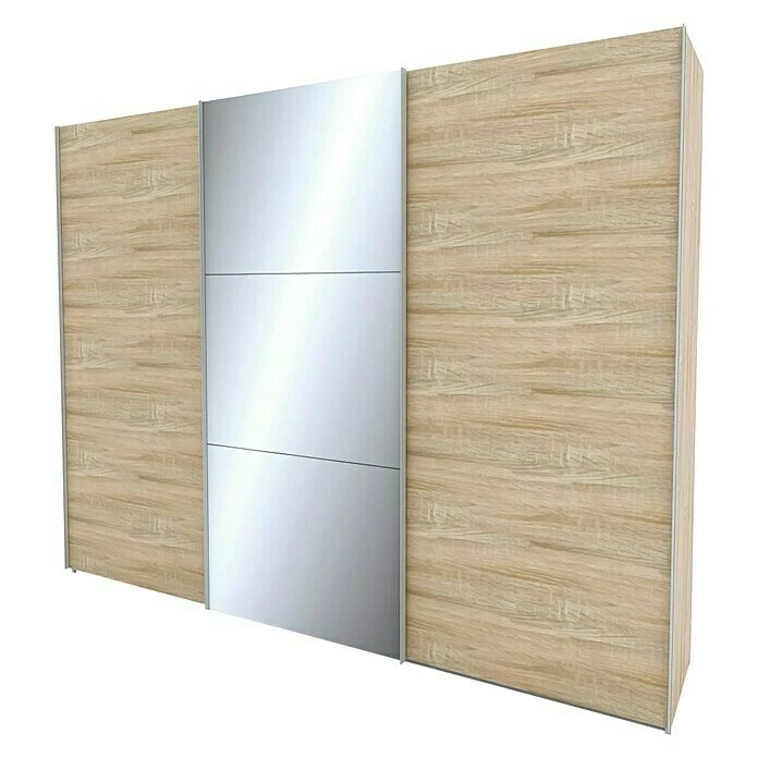 BAUHAUS Express Möbel Schwebetürenschrank Stars B X T X H: 300 X 68 X 236 Cm, Farbe Griff: Aluminiumfarben, Farbe Front: Eiche Sonoma/Spiegel, Farbe Korpus: Eiche Sonoma