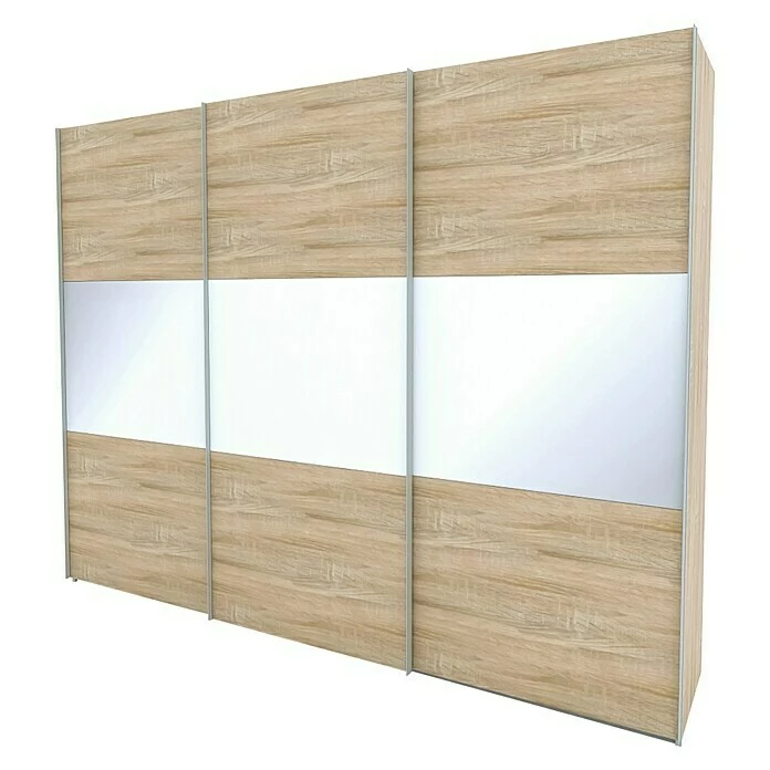 BAUHAUS Express Möbel Schwebetürenschrank Stars B X T X H: 300 X 68 X 236 Cm, Farbe Griff: Aluminiumfarben, Farbe Front: Eiche Sonoma/Weißglas, Farbe Korpus: Eiche Sonoma
