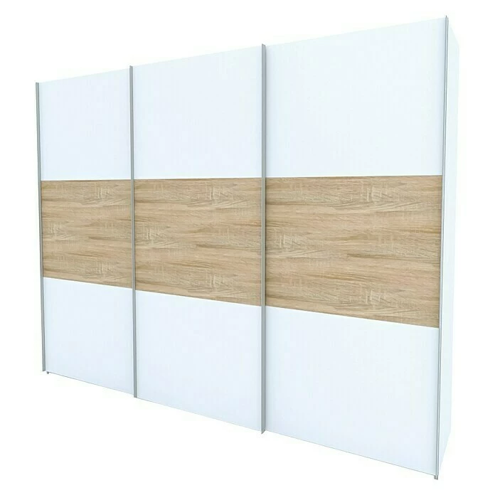 BAUHAUS Express Möbel Schwebetürenschrank Stars B X T X H: 300 X 68 X 236 Cm, Farbe Griff: Aluminiumfarben, Farbe Front: Weiß/Eiche Sonoma, Farbe Korpus: Weiß