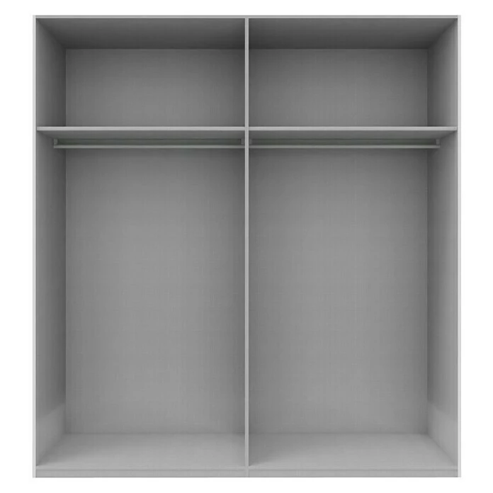 Der Kleiderschrank Swift von Express Möbel ist ein moderner Schwebetürenschrank mit einem frei zu nutzendem Innenraum. In den oberen Ablagefächern können Decken, Hüte oder Ähnliches sicher verstaut werden. Die Kleiderstangen eignen sich zur knitterfreien Aufbewahrung der Kleidungsstücke. Der aufgeteilte Innenbereich wird durch die Türen verdeckt. Die Schwebetüren sind mit einem Staubschutz ausgestattet, welcher das Verstauben des Innenbereichs verhindert. Der Swift ist aus Holzwerkstoff gefertigt und verfügt über hochwertige Metallbeschläge. Er ist wiederaufbaubar und somit umzugstauglich.