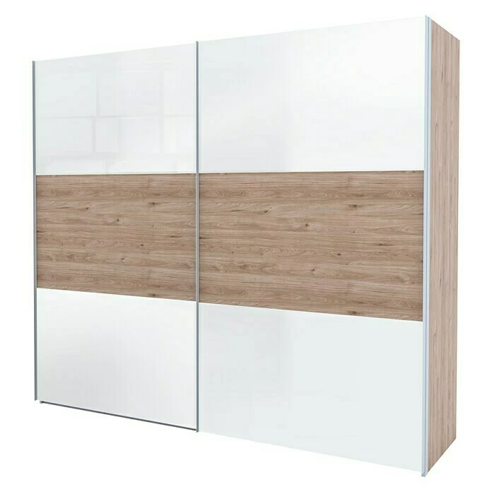 BAUHAUS Express Möbel Schwebetürenschrank Swift B X T X H: 250 X 68 X 216 Cm, Mit Glasfronten, Ohne Zubehör, Farbe Front: Weißglas Außen/Eiche Jackson, Farbe Korpus: Eiche Jackson