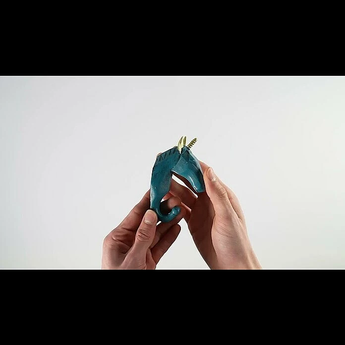 Der rund ausgeformte Garderobenhaken Einhorn ist dekorativ und funktional zugleich. An der Wand platziert, fungiert er als wahrer Hingucker und ermöglicht das bequeme Aufhängen von Jacken, Mänteln, Schals oder Taschen.