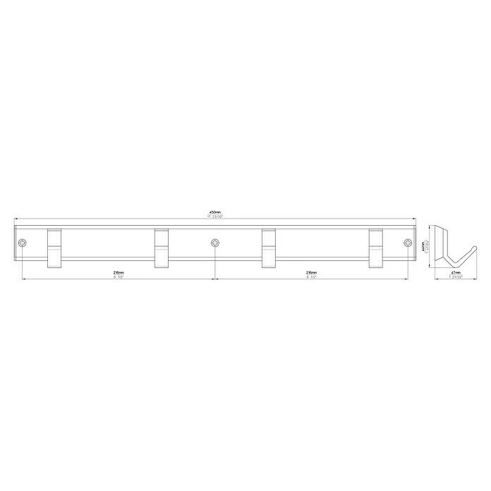 BAUHAUS Hakenleiste 2083 Aluminium Weiß L X H: 450 X 44 Mm, Anzahl Haken: 4 Stk.