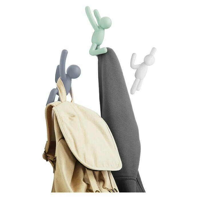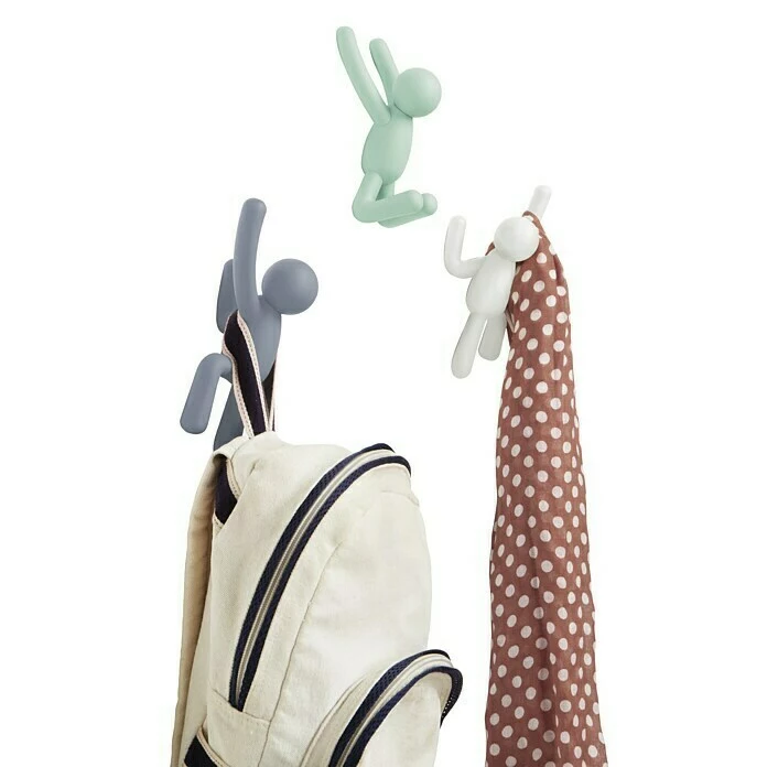 Der Kleiderhaken Buddy ermöglicht eine individuelle Gestaltung Ihrer Wohnräume. Er besteht aus 3 unabhängig voneinander montierbaren Haken im Klettermännchen Design. Sie bestehen aus Kunststoff, lassen sich schnell und einfach montieren und verfügen über eine Traglast von 2,2 kg/Haken.