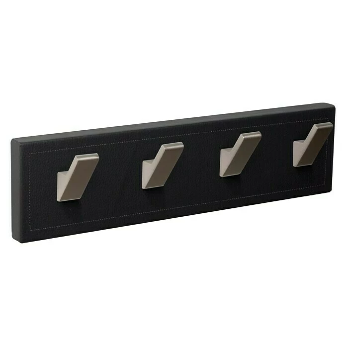 BAUHAUS Nesu Garderobenleiste L X B X H: 40,3 X 5,5 X 10,3 Cm, Anzahl Haken: 4 Stk., Schwarz, Leder