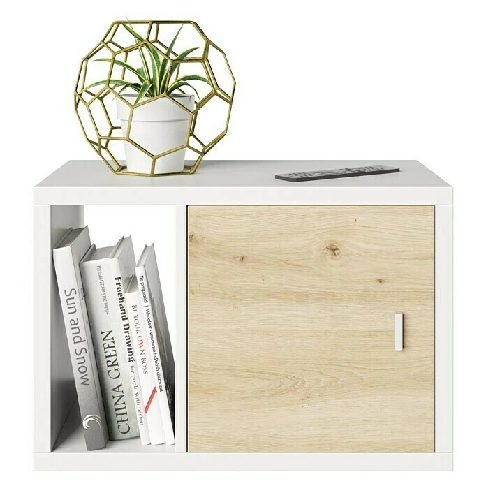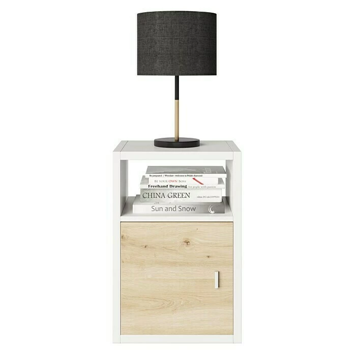 Der Beistelltisch Fortuna mit Tür von Phönix bietet mit seinen zwei Fächern Stauraum für Zeitschriften, Bücher oder der Fernsehbedienung. Das Regal mit asymmetrischer Fachanordnung ist in einem zeitlos modernen Stil gehalten. Es ist mit weiteren Möbeln der Serie Fortuna kombinierbar und lässt sich auch als Couchtisch oder Nachttisch verwendet.