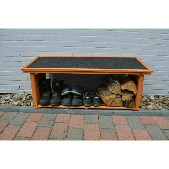 Das Schuhregal Shoeport von Promadino ist der ideale Abstellort für Ihre Gartenschuhe und Gummistiefel. Durch die spezielle Höhe können auch Reitstiefel vor Regen geschützt werden. Außerdem kann das für den Abend benötigte Kaminholz auf dem Shoeport trocken verstaut werden.