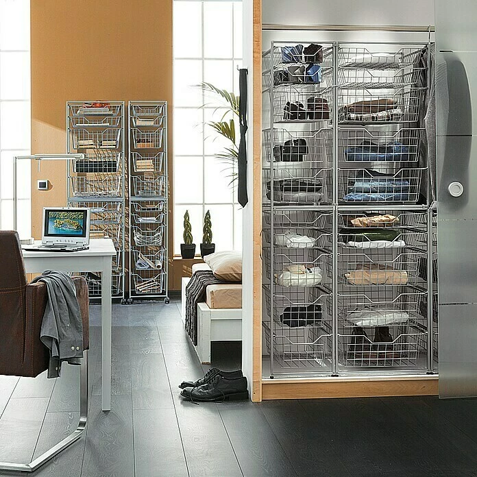 Das praktische Regalux Metall-Korb-System Clever ist ein äußerst flexibles Aufbewahrungssystem und bietet vielfältige Kombinationsmöglichkeiten mit unterschiedlichen Körben und Rahmen, die sich miteinander kombinieren lassen. Durch die silberne Pulverbeschichtung passt es sich sehr gut an die vorhandenen Einrichtungsstile an. Der Korb ist für die schmalen Clever Rahmen geeignet. Um Ihnen eine bessere Übersicht über die vielseitigen Kombinationsmöglichkeiten des Regalsystems Clever zu bieten, finden Sie unter ´Datenblätter´ auf dieser Seite ein Produktinformationsblatt.