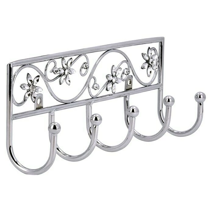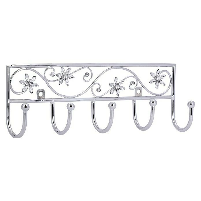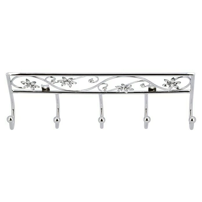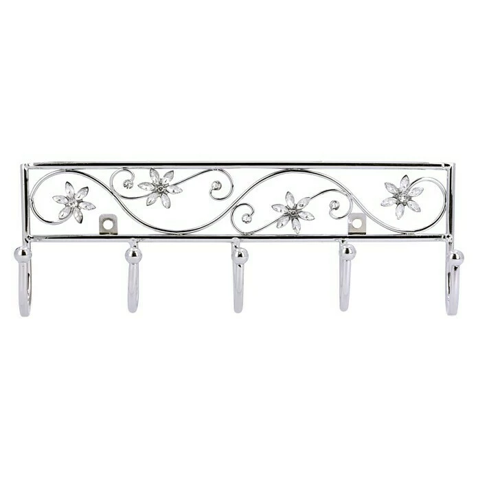 Die verspielte SIRO Hakenleiste 2165 ist aus Stahl gefertigt. Mit 5 Haken und einer Gesamtlänge von 260 mm besticht sie durch eine hochwertige Verchromung und romantische Blumen Details mit Strasssteinen. Durch die im Lieferumfang enthaltenen Schrauben ist die Montage einfach und schnell zu erledigen.
