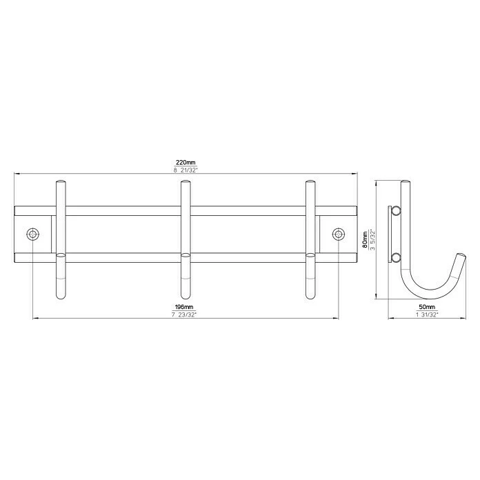 BAUHAUS Siro Garderobenleiste 220N1V1E L X B X H: 220 X 80 X 50 Mm, Anzahl Haken: 3 Stk., Silber
