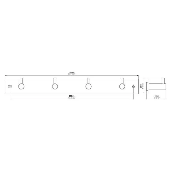 BAUHAUS Siro Hakenleiste 1890 L X H: 322 X 47 Mm, Anzahl Haken: 4 Stk.