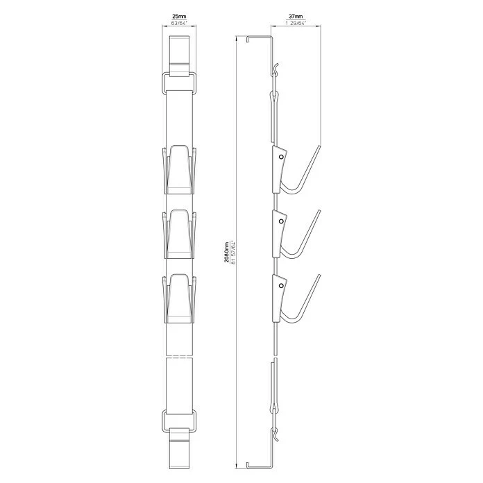 BAUHAUS Siro Wand- & Türgarderobenleiste H206/A3ZN1V1B L X B X H: 25 X 2.080 X 37 Mm, Anzahl Haken: 3 Stk., Schwarz
