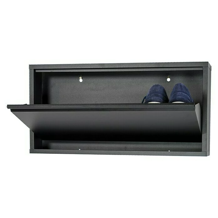 Der Schuhschrank Billy 1 von Spinder Design eignet sich ideal für das Verstauen von Schuhen und Hausschuhen. Auf der Ablagefläche finden bis zu 3 Paar Schuhe Platz. Damit ist für Ordnung gesorgt und ein unordentlicher Schuhberg auf dem Flur gehört der Vergangenheit an. Der aus pulverbeschichtetem Stahl gefertigte Schuhschrank wird an die Wand montiert. Ein funktionelles und platzsparendes Design zeichnen den Schuhschrank Billy 1 aus. So verdankt er seine schlanke Form dem kippbaren Fach.