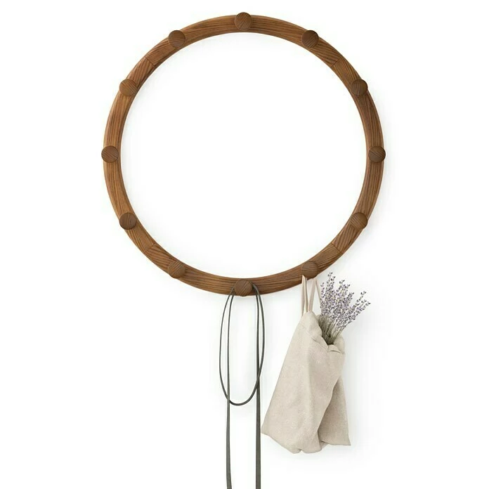 Das Garderobenhaken-Set Slinka der Marke Umbra mit modularen Bogenelementen kann in 4 verschiedenen Konfigurationen angeordnet werden. Jedes Wandelement verfügt über 3 Haken, sodass insgesamt 12 Haken zur Verfügung stehen. Jedes Hakenset trägt bis zu 6,8 kg oder 2,3 kg pro Haken. Slinka’s Design mit seinen weichen, abgerundeten Kanten und edler Holzoberfläche verleiht jedem Raum einen dekorativen Touch und bietet gleichzeitig Stauraum für alltägliche Dinge. Wählen Sie die Konfiguration, die am besten zu Ihrem Raum passt. Die Haken an beiden Enden dienen gleichzeitig als Befestigungselemente.