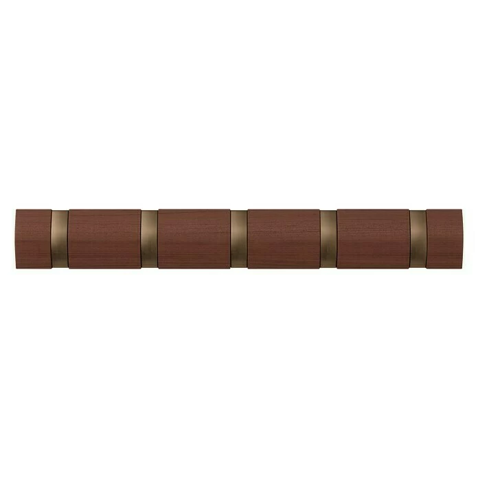 BAUHAUS Umbra Garderobenleiste Flip L X B X H: 6,4 X 50,8 X 3,2 Cm, Anzahl Haken: 5 Stk., Walnuss, Gold